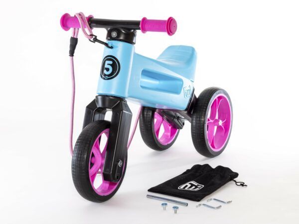 - 2 v 1 – hravo zmeníte trojkolku na dvojkolesové balančné odrážadlo. Dieťa si pri tejto zmene nemusí zvykať na novú hračku, stále riadi svoje „staré známe“ odrážadlo a zmenu ľahšie zvládne. Môže sa tak učiť bez stresu (bez strachu) novému druhu pohybu, rovnováhe, robiť pokroky.