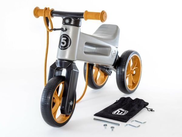 Odrážadlo FUNNY WHEELS Rider SuperSport 2v1 šedé matné s popruhom a tichými kolesami